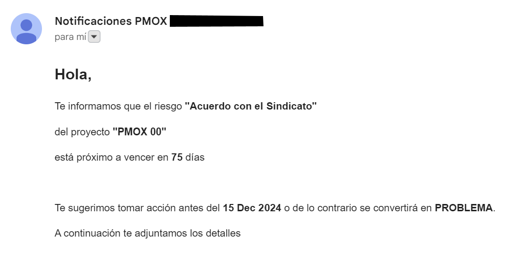 PMOX ayuda a evaluar, controlar y dar seguimiento de los riesgos asociados a cada proyecto, permitiendo anticiparte a problemas, evitar o mitigar impactos negativos, aprovechar o explotar impactos positivos.