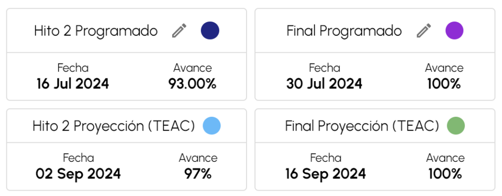 PMOX ofrece la capacidad de predecir fechas de finalización e hitos, basadas en el progreso del proyecto, ayuda a preveer de manera efectiva.